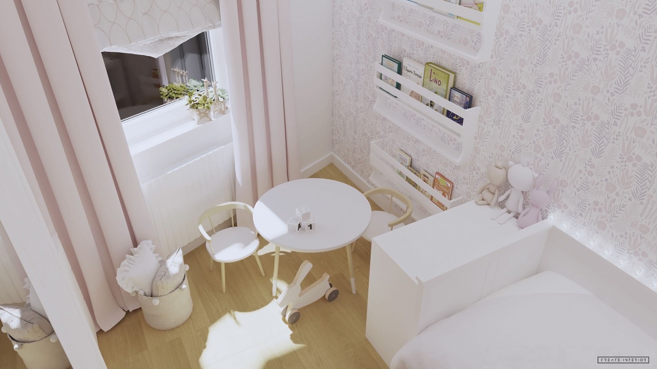 Abszolút irreleváns információ a projekt szempontjából, de mivel fentebb is már belengettem, így elmesélem, hogy megrendelőim gyermekei pont annyi idősek, mint az én gyermekeim, csak épp ellenkező neműek. Ezért volt hát számomra könnyebb beleképzelnem magamat a család életébe. A korosztály ismerete az igények szempontjából tehát megvolt, de a konkrét érdeklődési kört bevallom kutatnom kellett. Először az volt egy határozott pont nálam, hogy szeretném a kislányok szobáit tapétával díszíteni, de erről meg kellett győzni megrendelőimet. Sajnos egyre többet tapasztalom, hogy szegény tapéták még mindig rossz emlékeket idéznek általánosságban az emberek számára és megrendelőim is igyekeznek elkerülni a tapétázást, pedig nem igen tudok ennél szebb dekorálási formát mutatni, mely ennyi pozitív hatást tud adni a térnek. Szóval a tapétánál tartottam és ott, hogy meg kellett győzni megrendelőimet erről. Ismét moodbordon keresztül tudtam a legjobban prezentálni elképzeléseimet, így szerencsére hamar elfogadták az ötleteimet. A tapétákat végül a lányok választották ki maguknak, de bevallom az egyik szobában lévő tapéta pont az, amit eredetileg én is választottam ide.