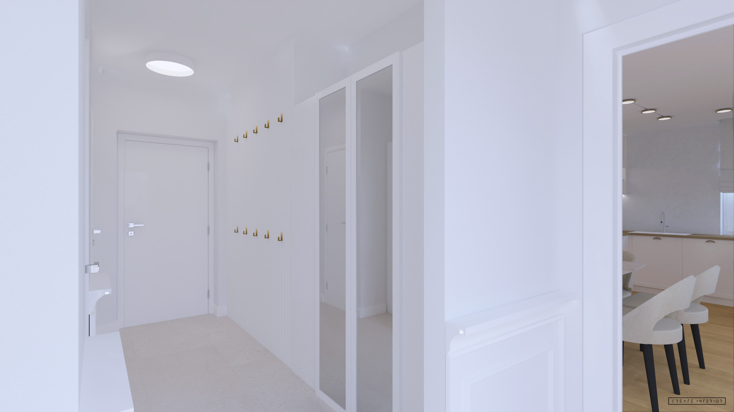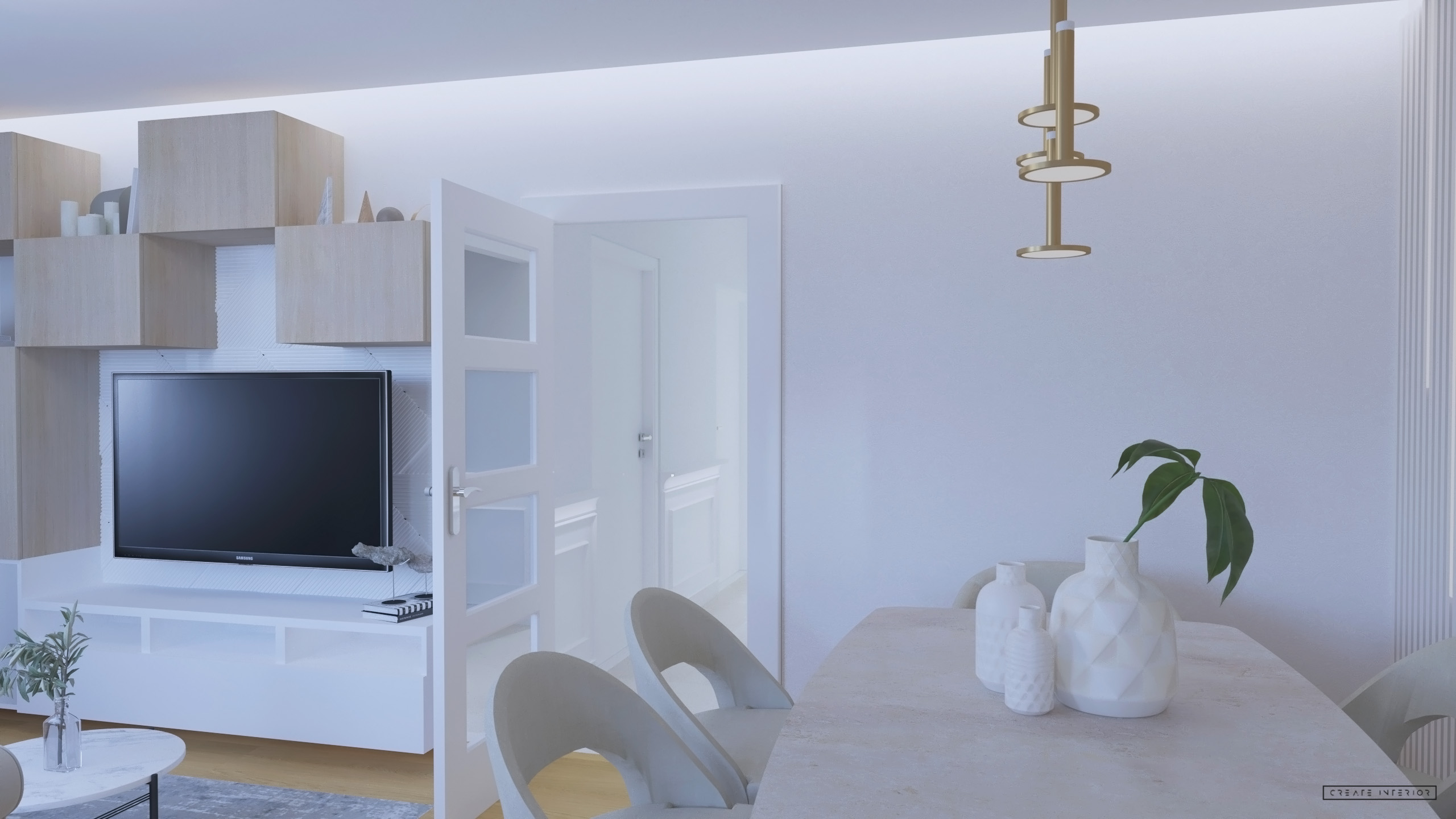 Az újonnan megvásárolt lakás egy relatív újépítésű társasházban található, de a korábbi berendezés egyáltalán nem passzolt megrendelőim elképzeléseihez új otthonukat illetően. Kiinduló pontnak annyit kaptam, hogy fehér, modern és praktikus otthont szeretnének és a felújítás ne járjon falmozgatással, csak burkolatcserével és szaniter cserével a fürdőszoba esetében. Térkiosztás szempontjából elég szerencsétlen elrendezésről beszélünk, sajnos a társasház fekvéséből adódóan más felosztásra nem volt lehetőség és mivel említettem, hogy falak mozgatásával nem számoltunk, így azzal kellett megbirkózni, amink volt. Ez elég gyakran előfordul munkám során, szóval semmi új nem volt ebben.