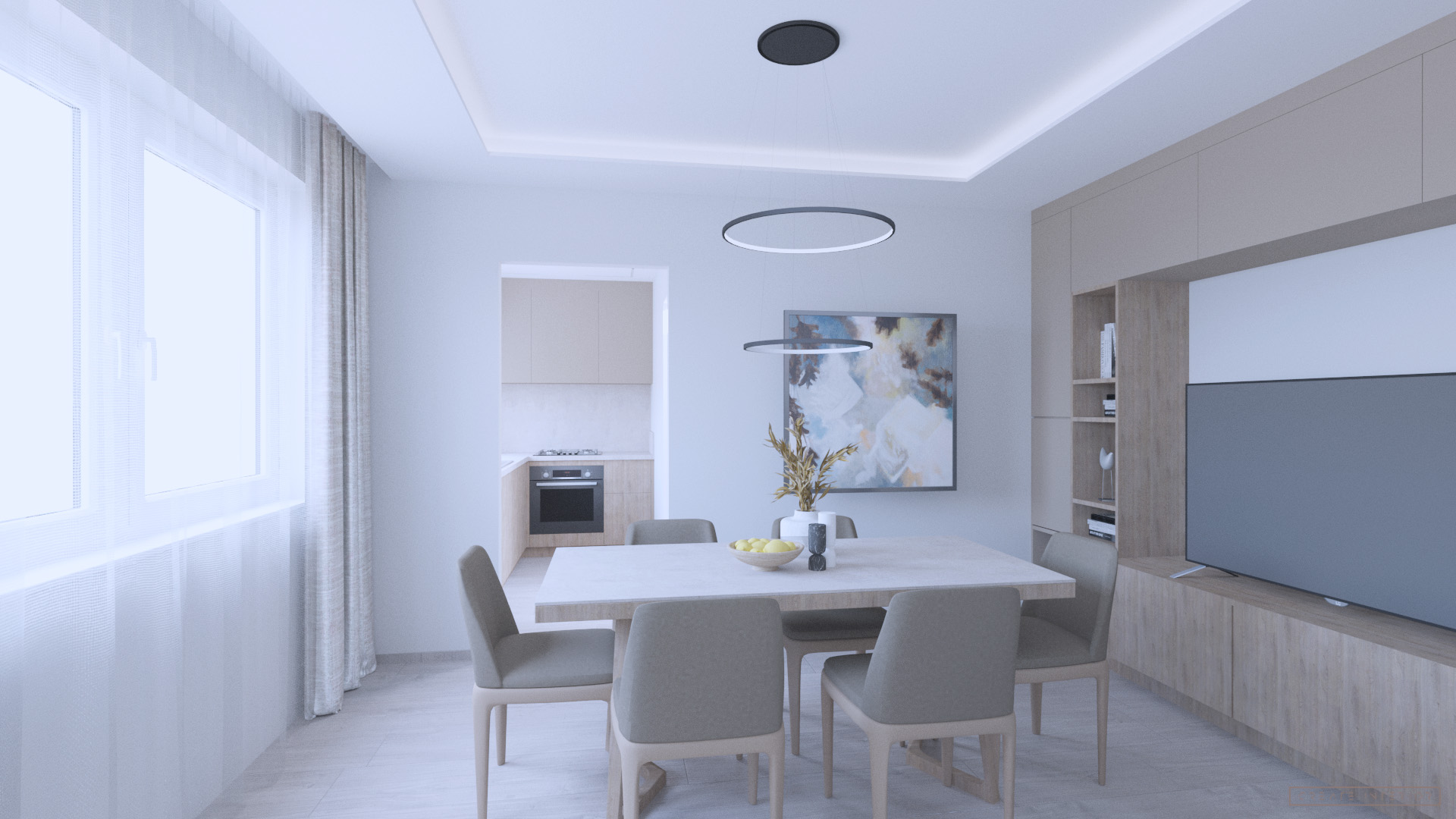A lakás minden helyisége új funkcionális elrendezést és modern megjelenést kapott, új burkolatok, új elrendezés, a világítási rendszer pedig a hangulat szerves része lett. A burkolatok, bútorok és beépített elemek minden helyiségben harmóniára törekszenek, miközben megőrzik az egyediség érzését.