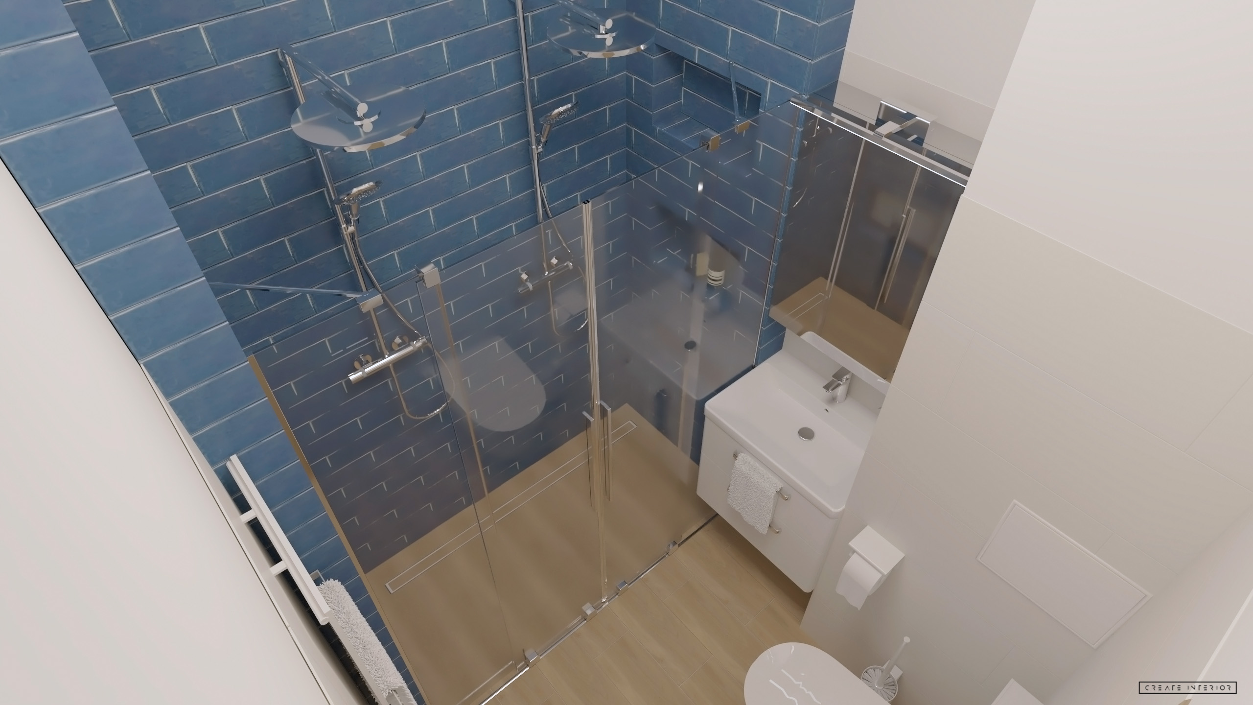 Szóval, ahogy fentebb is említettem, a kék metrócsempe volt a kiindulópont. Megrendelőm egy inspirációs fotót mutatott nekem, amikor arról beszéltünk, hogy mégis milyen irányt vegyen a színtervezés. Ehhez remek találat volt az ACDesign által forgalmazott fényes felületű fózolt rusztikus hatású kék metrócsempéje. A fürdőszobában tehát innen indultunk a színtervezést illetően. Ezt egy famintás burkolattal egészítettük ki. A további színeket egyszerűbbre vettük és maradtunk a fehér nagyszerűségénél, mivel ez jól kiegészít, de jól is dekorál.